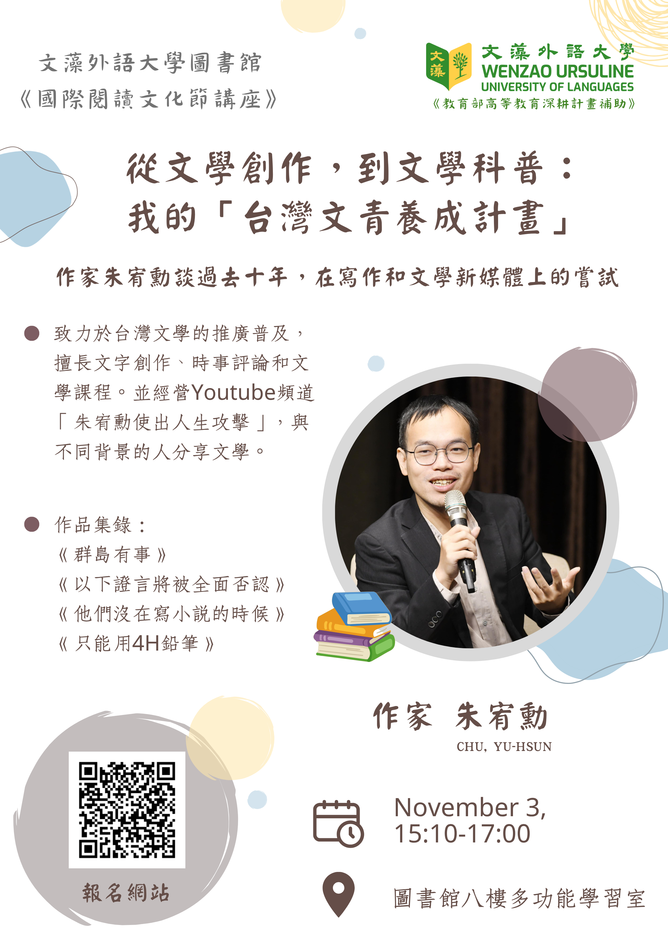 主題:從文學創作,到文學科普:我的「台灣文青養成計畫」